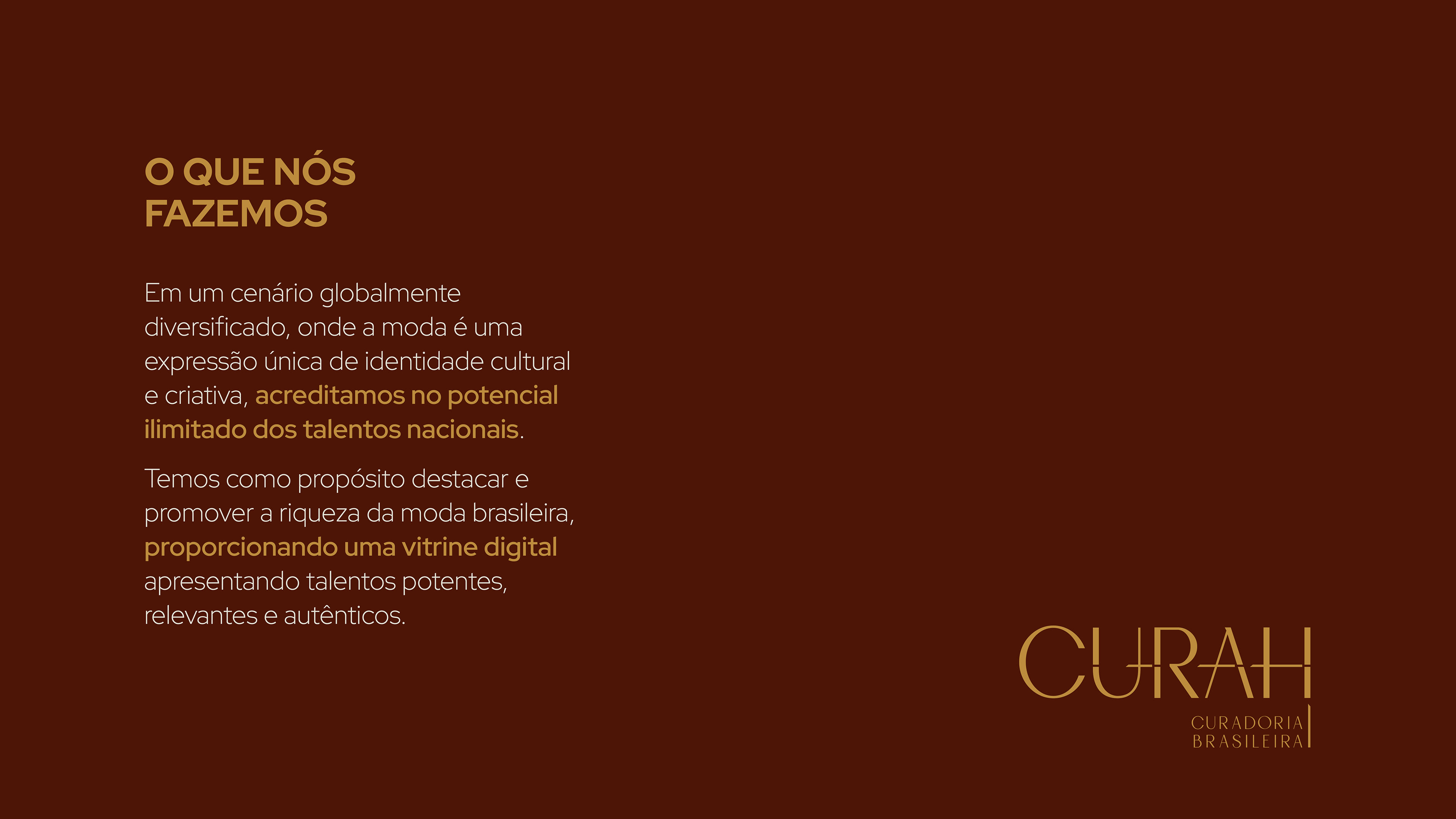 CURAH é um espaço dedicado a explorar, descobrir e conectar o melhor da moda brasileira às pessoas que valorizam a diversidade e a originalidade.